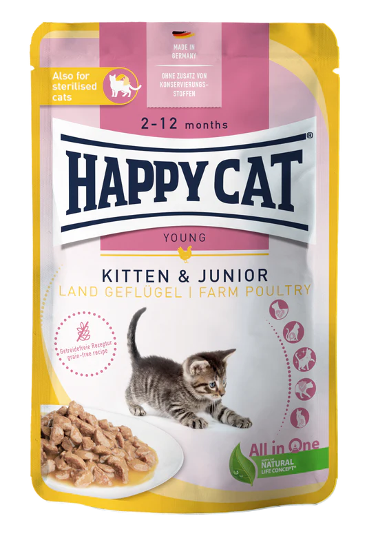 Happy Cat Wet Food with Farm Poultry in Sauce for Kittens & Junior Cats (2-12 Months) 85g
